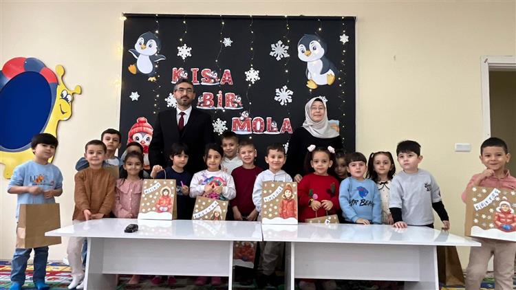 İlçe Müftümüz İsmail Hakkı Şahin 4-6 yaş Kuran Kursu öğrencilerine ilk dönem karnelerini ve hediyelerini verdi.