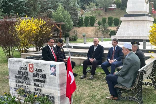 Valimiz Önder Bakan, Garnizon Komutanı Tuğg. Kemal Çakıroğlu, İl Müftümüz Hamza Bayram ve protokol üyeleri Ramazan Bayramı arifesinde Amasya Şehitliği’ni ziyaret etti. Vatanımızın bekası ve milletimizin birliği için canlarını feda eden aziz şehitlerimiz dualarla anıldı. İl Müftümüz Hamza Bayram’ın Kuranı Kerim tilaveti ve akabinde yaptığı duanın ardından şehitlerimizin kabirlerine karanfiller bırakıldı.