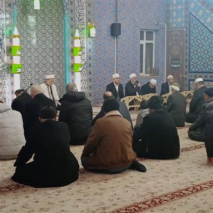 İlçe Müftüsü Sıtkı Kaya'nın sohbetinin ardından Filistin başta olmak üzere ülkemizin ve tüm Müslümanların refaha ermesi, İslam Aleminin birlik, beraberlik, dayanışma ve kardeşliği için dualar edildi.
