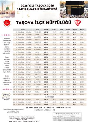 Taşova 2026 Yılı Ramazan İmsakiyesi